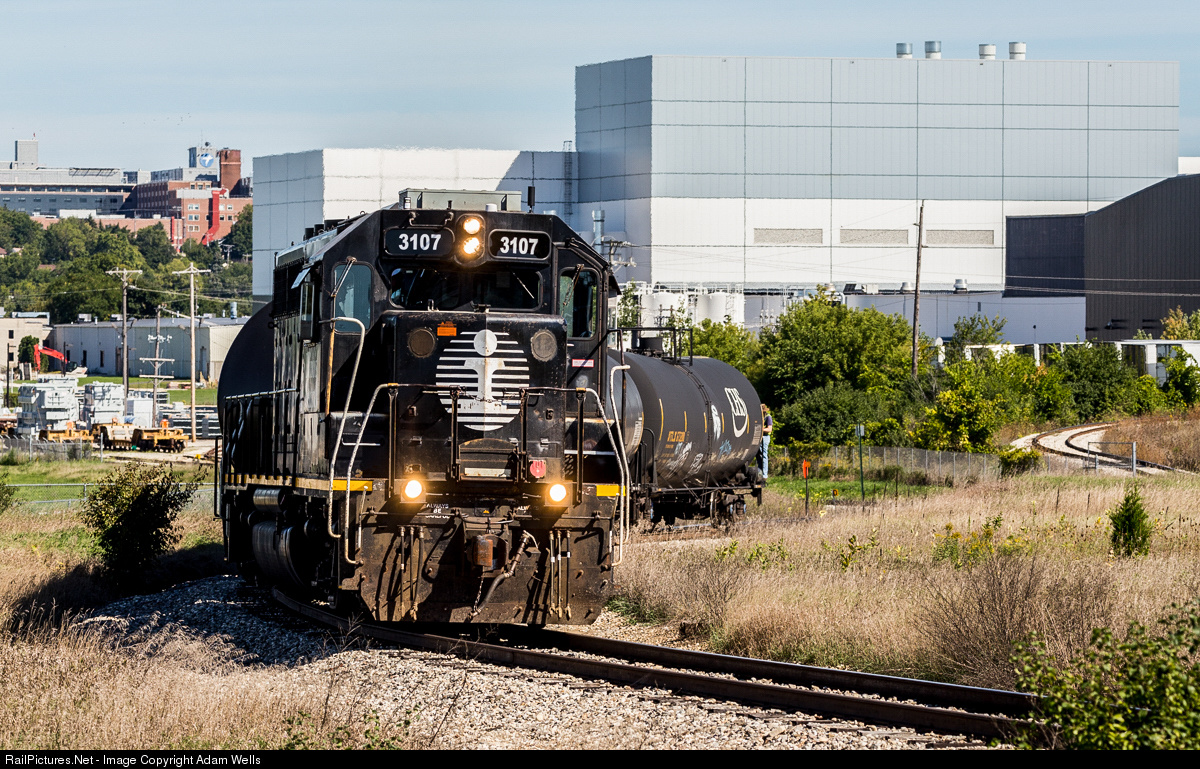 A fallen flag GP40 hangs onto it's original paint here in Waukesha where the local works the Amron Spur with tanks for Ventura Foods before a transformer pickup at SPX.