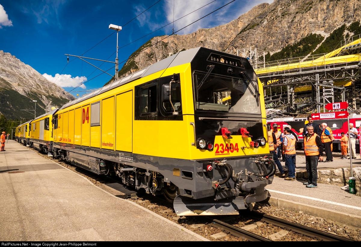 | All the four new Gmf 4/4 of the RhB (delivered 2014) are together on display in Preda for the open day of the woksite of the new Albulatunnel which is being drilled parallel to the existing one. Guided tours allowed the visitors to see the installations and enter the galleries. |