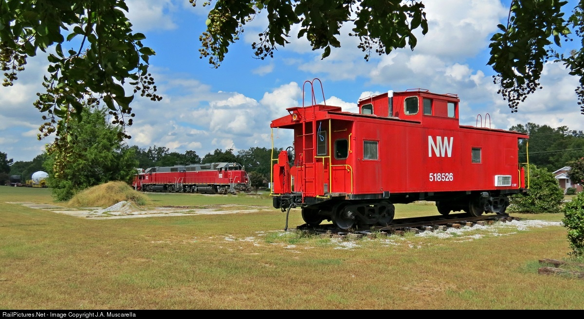 | The General Electric Turbine Special is passing through the small town of Gray Court, SC. Downtown Gray Court also has a static display of a Norfolk & Western caboose. |