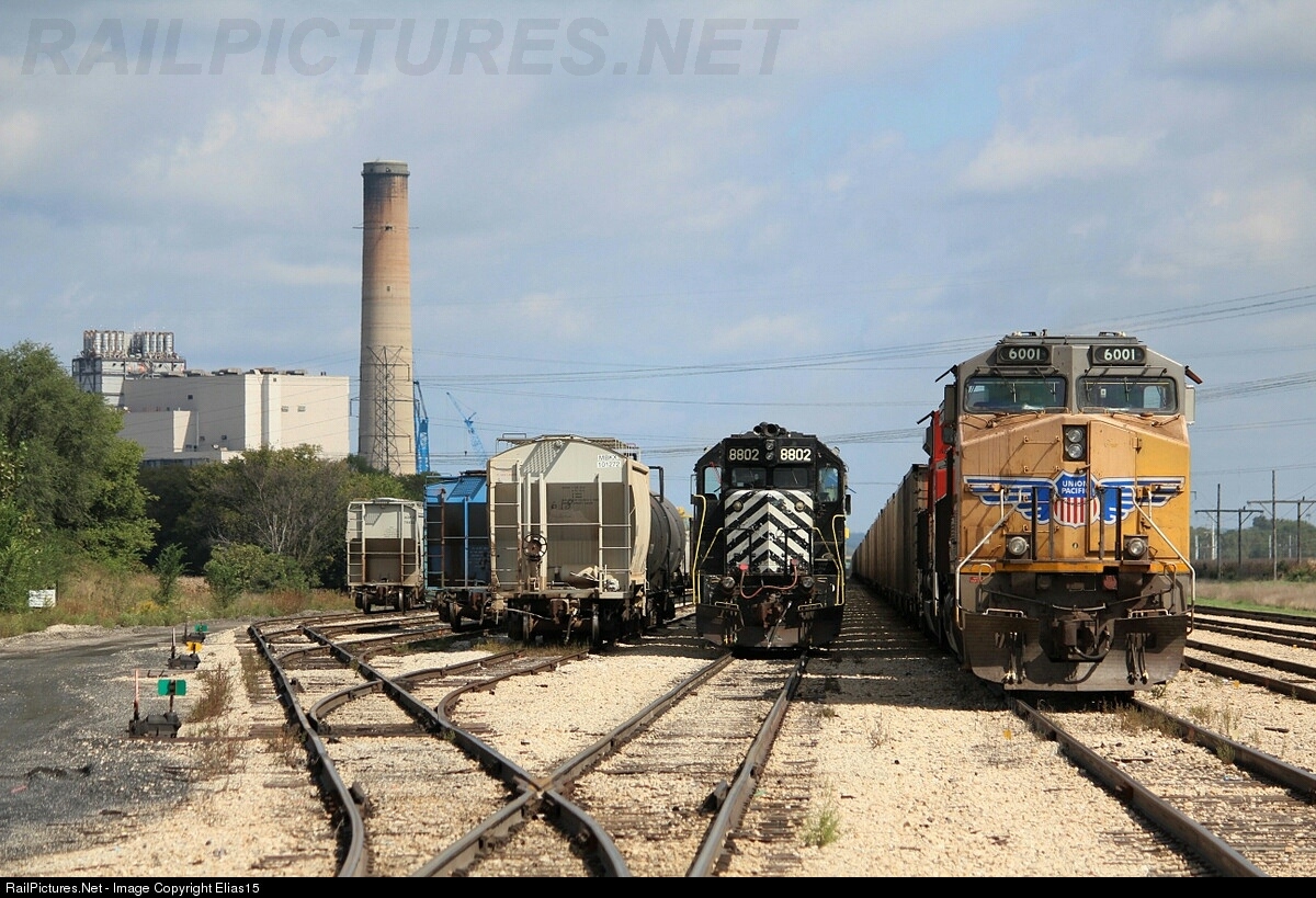 An Union Pacific empty coal train sits in Pekin Illinois next to an Illinois&Midland train at the coal plant.
