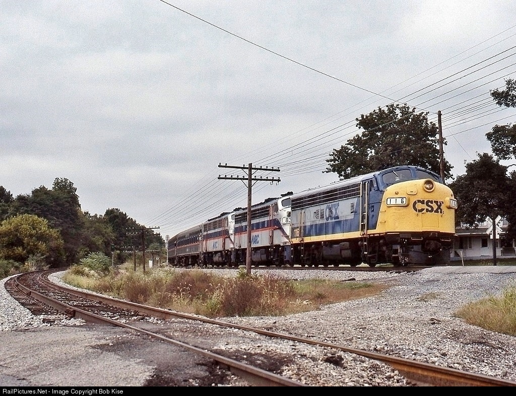 Three elephant-style F-Units are heading to Hagerstown on the old Western Maryland Railway's Altenwald Cutoff. It's left-hand running here in 1992, with eastward Rutherford-bound loads assigned to the near track, which had an easier grade. Today, the far track remains in service to access the new Chambersburg Terminal.