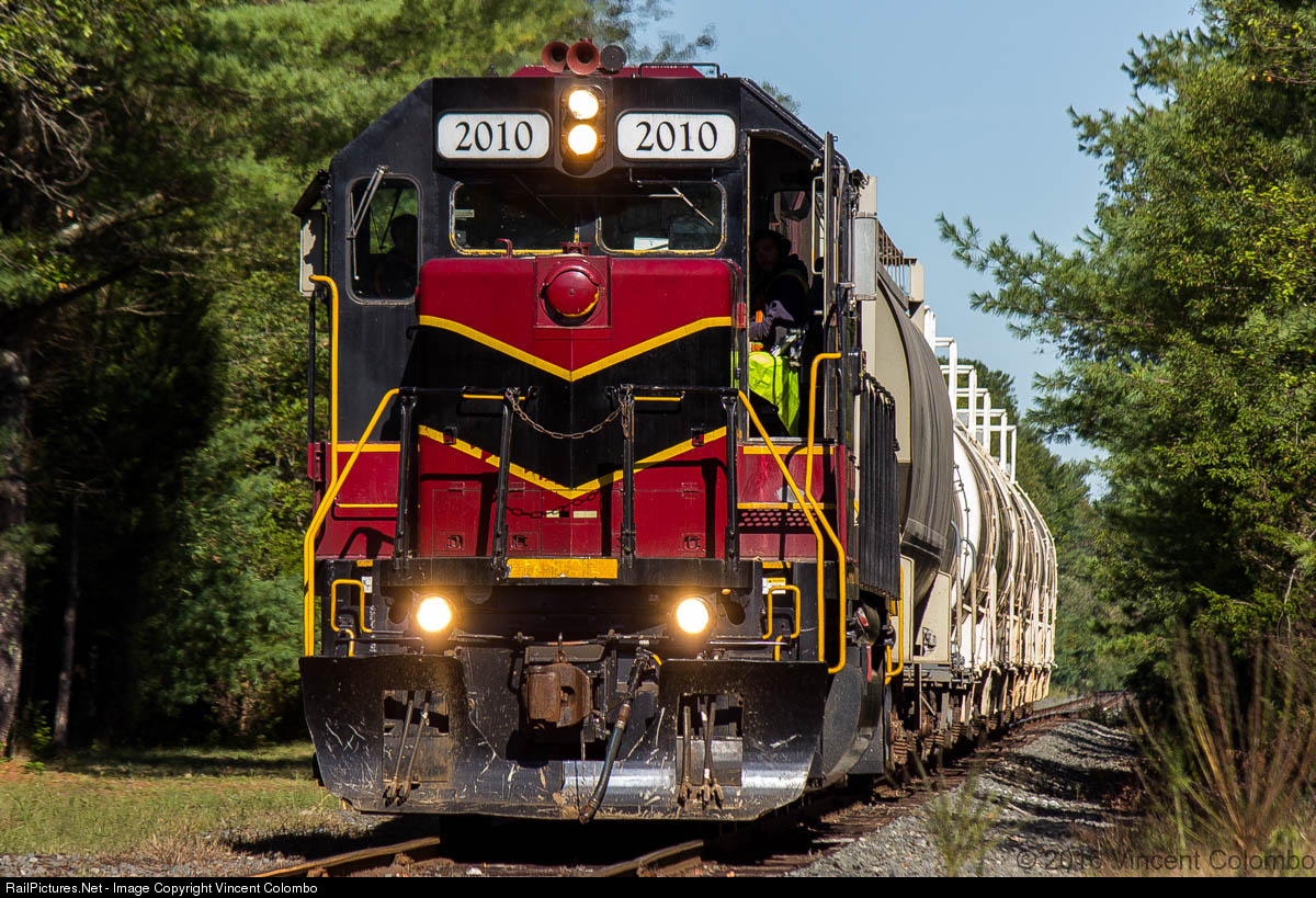 | Former CNW GP50 2010 is on the New Bedford Subdivision, and will soon exit onto the Fall River Subdivision at Myricks to proceed to Fall River, only to return to Taunton later in the day. |