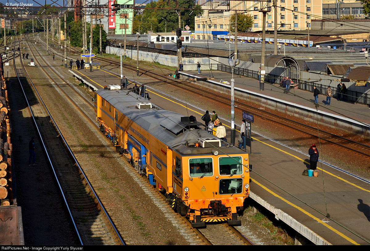Ballast tamper Phasser & Tueuer Dynamic Stopfexpress 09-3X #6366 leading through Kyiv-Petrivka station. Ballast tamper this ballast tamper was built in 2007.