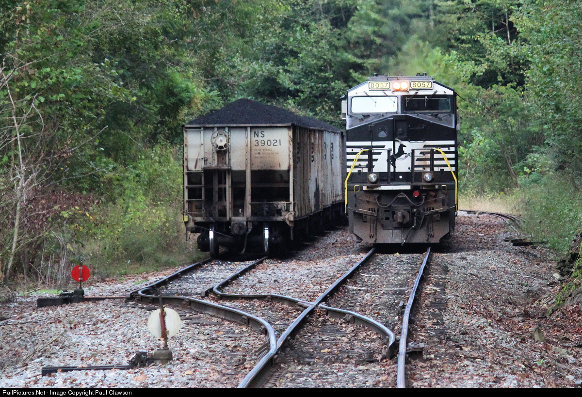 | The NS 8057 ES44AC is backing passed its first cut of loads with the 2nd cut of empties and heading toward Lone Mountain processing Coal Co. in Benedict, VA at dusk. |