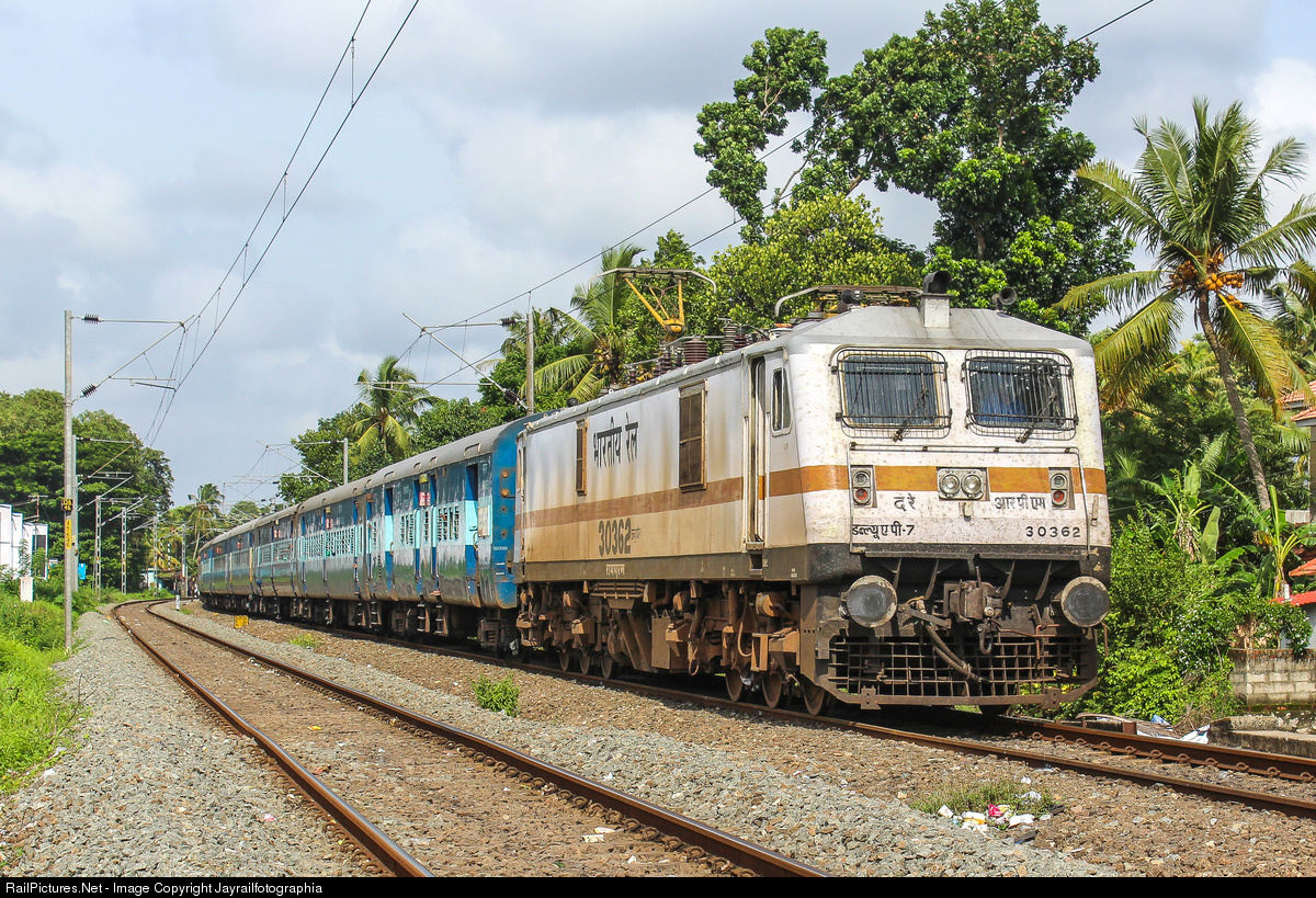 Chennai Superfast Mail Express powered by ROYAPURAM WAP-7 slowing down for its next stop at Kollam Junction