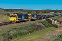 On Sunday morning, October 2, Pacific National grain train - symbol 3938 - is seen eastbound at Joppa Junction with pair of matched 8100-class units in the Pacific National Railway scheme.