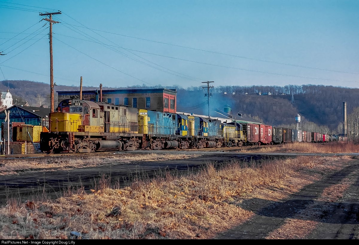 After the Delaware & Hudson’s expansion as a result of the Conrail merger, the D&H was short of power, and looked in all directions for additional locomotives. One solution came in the form of a group of ex-Long Island high hood C420’s that had outlived their lease to the LIRR. Although they were patched as D&H assets, I don’t believe that they were around for very long. Here two of them are sandwiched between an ex-LV C420 and an M-K RS3 rebuild on a northbound train (westbound on this line) departing Allentown, Pennsylvania.