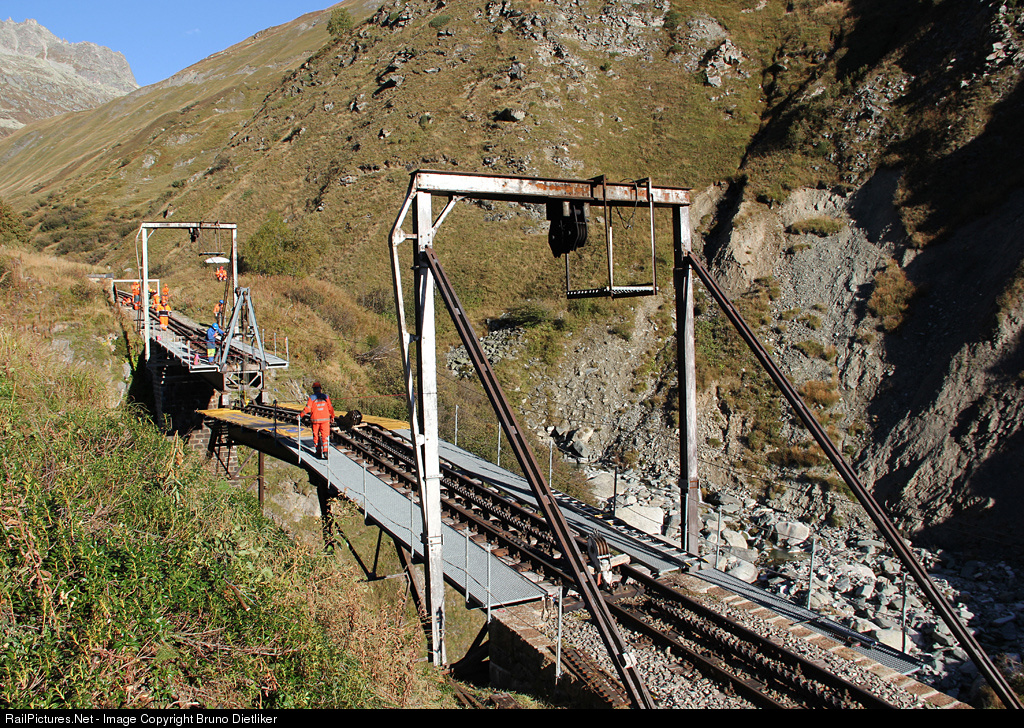 A very special thing: every autumn about 15 volunteers hinge down the three parts of this bridge 'Steffenbachbrücke' (built 1925) between Realp and Tiefenbach. Every winter a big snowslide comes through this small valley. In the springtime the men construct the bridge again for the summer season of the steam company