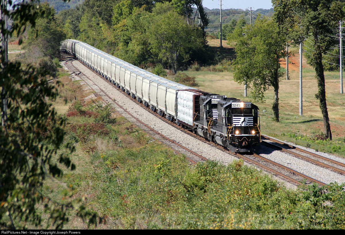 NS local A81 has just taken the passing siding at Elko within the city limits of Huntsville, AL for a meet with a westbound empty coal train. The train of 51 cars consists of a loaded center beam car and 50 brand new EFNX covered hoppers built at Freight Car America's Shoals facility in north Alabama. A81 will soon interchange the covered hoppers with the Huntsville and Madison County Railroad where the cars will be placed into temporary storage.