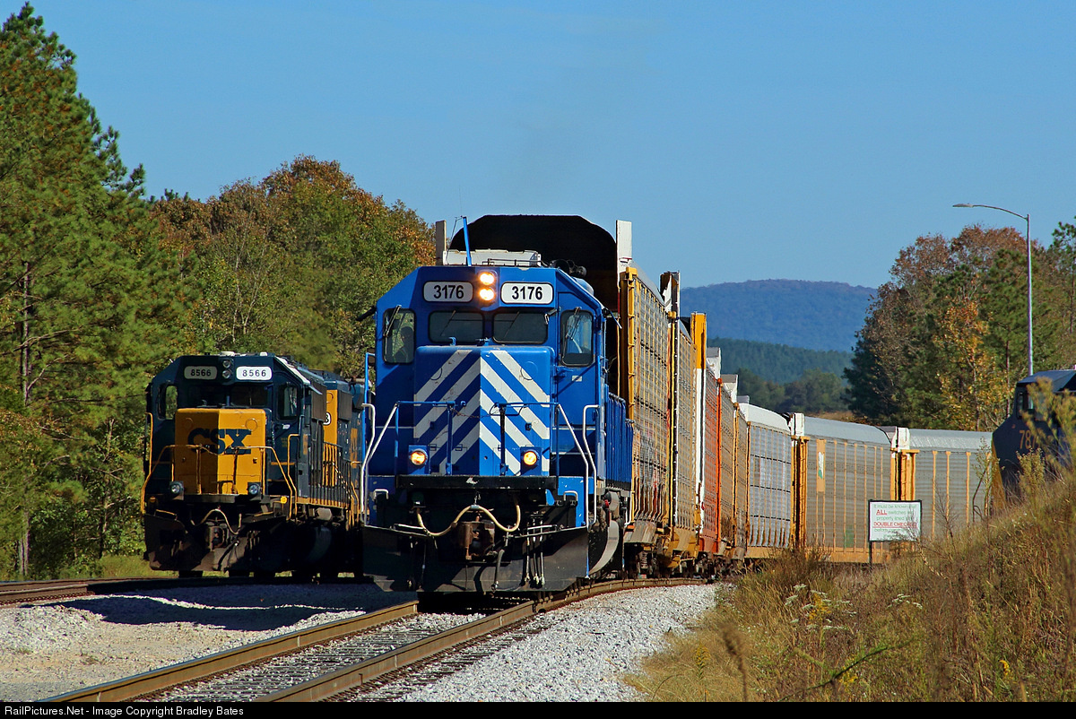| CEFX SD40-2 #3176 is seen here doing some switching at the Road & Rail Vehicle Hub in Talladega, AL. CEFX #3176 is assigned to this Vehicle Hub for now. A pair of CSX motors can be seen sitting on the left awaiting their next assignment