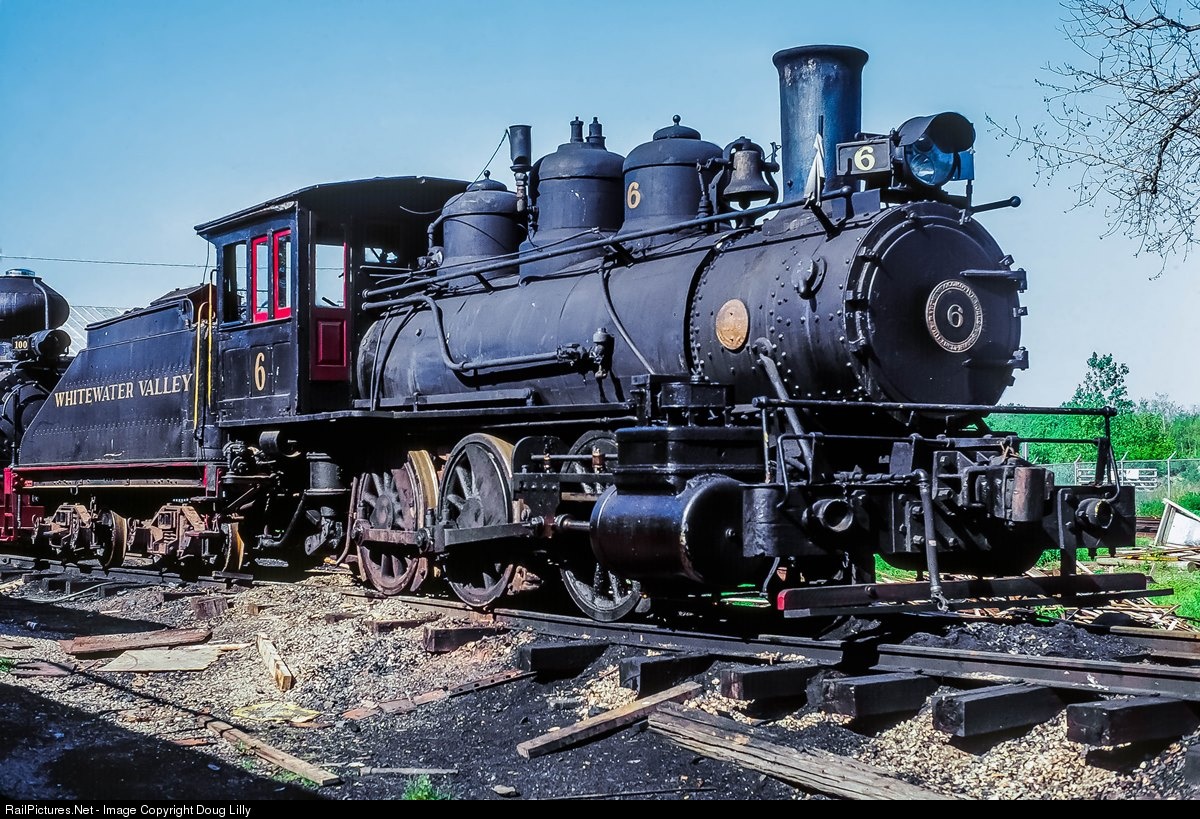 Two standard gauge 0-6-0’s handled the duties of switching the dual-gauge Mount Union yards, and they too were locked in their enginehouse in Mount Union when the road shut down. They remained there until 1975, when the smaller Number 6 was taken out and sent to the Whitewater Valley Railroad in Indiana. Number 3 remains locked in the Mount Union enginehouse today, but the 6 was soon feeling fire in its belly as the main steam locomotive on the WVRR. The 6 was pressed into service in primer paint. This photo shows the locomotive in more conventional paint in Connersvile in 1981. A year later, the 0-6-0 was taken out of service for boiler work. Subsequent financial constraints at the WVRR, coupled with revised boiler requirements as a result of the Gettysburg Railroad boiler failure, permanently derailed the work on Number 6. The most recent photo that I could locate depicts a very deteriorated condition of the 0-6-0. I can’t locate any information from the past decade, but this link includes instructions for contributing to a fund to stabilize the condition of the 0-6-0.