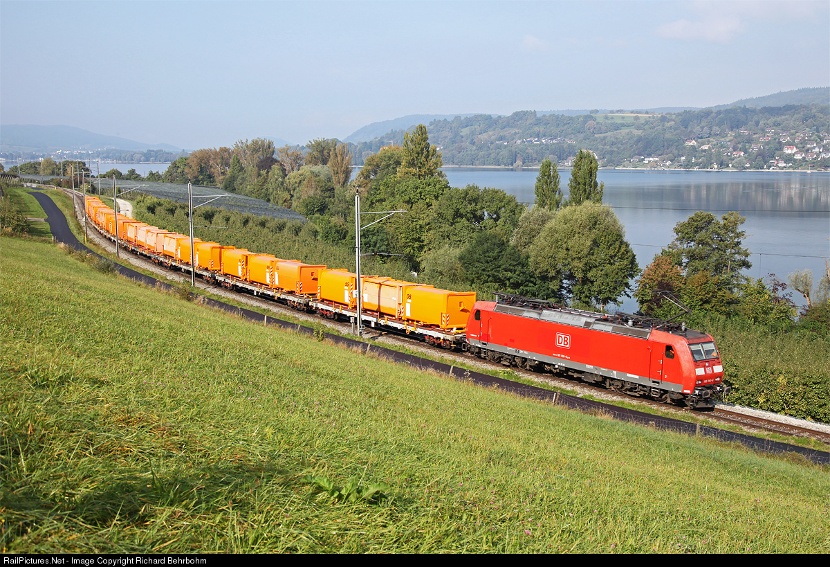 | A diverted freigth train (containers are loaded with garbage) Singen (Germany) - Weinfelden (Switzerland) along the Lake Constance on the line Schaffhausen - Kreuzlingen, usually without freight trains. |