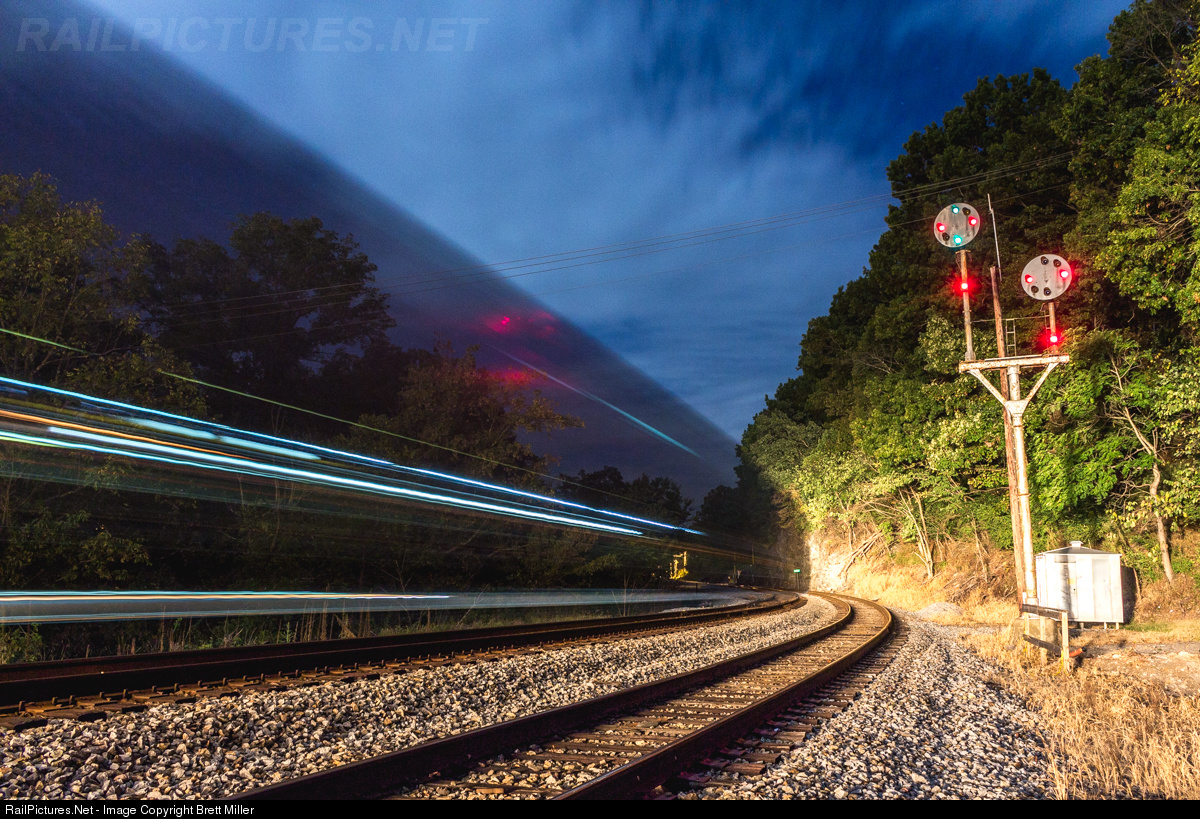 On a warm September night, the westbound 15T rounds the bend on Main 1 and lights the way past the classic Norfolk and Western CPL at "Marion" These signals are weeks away from being replaced.