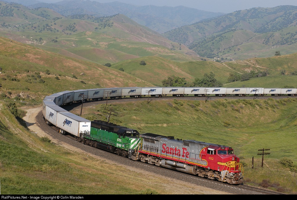 | SF612, BN6790 approach Tunnel 2 between Caliente and Bealville, southbound 'Swift' road-rail train. 17.27Hrs. |