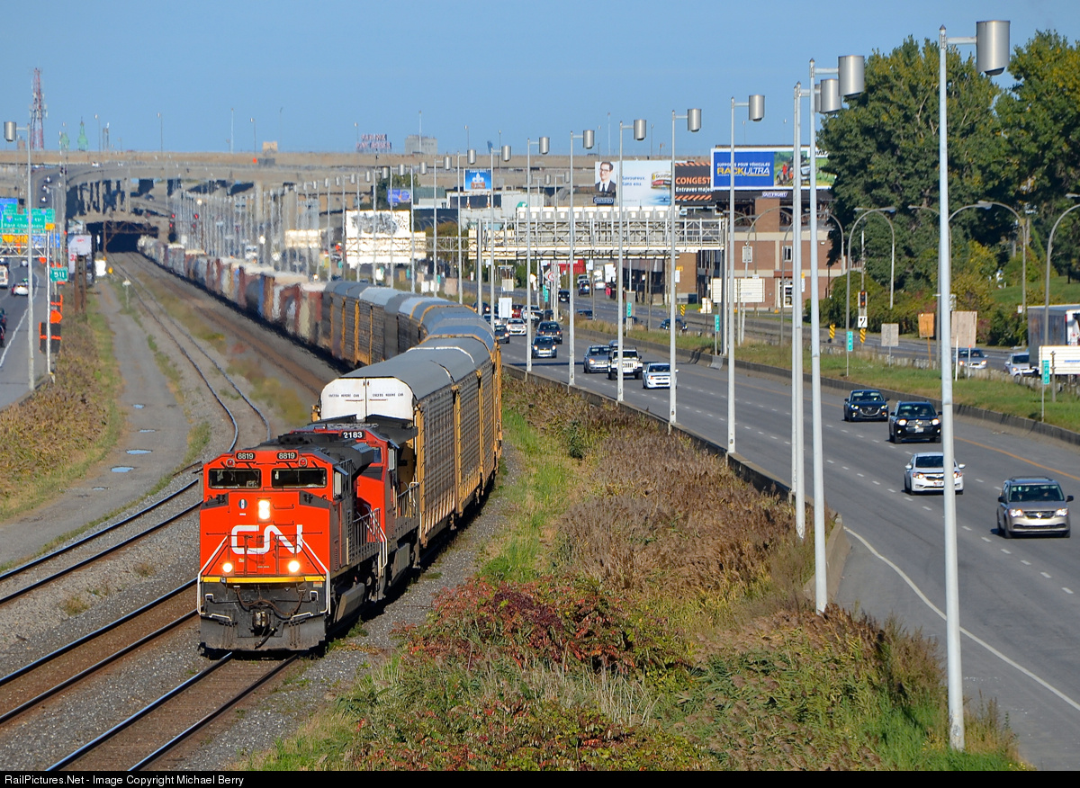 | CN 401 with CN 8819 & CN 2183 for power slowly approaches Turcot West, as the train will have to wait for VIA 67 to pass on the north track of CN's Montreal Sub. Not too long after getting going again they will be stopped by the hotbox detector at MP 5 which told them they had a hot axle. |