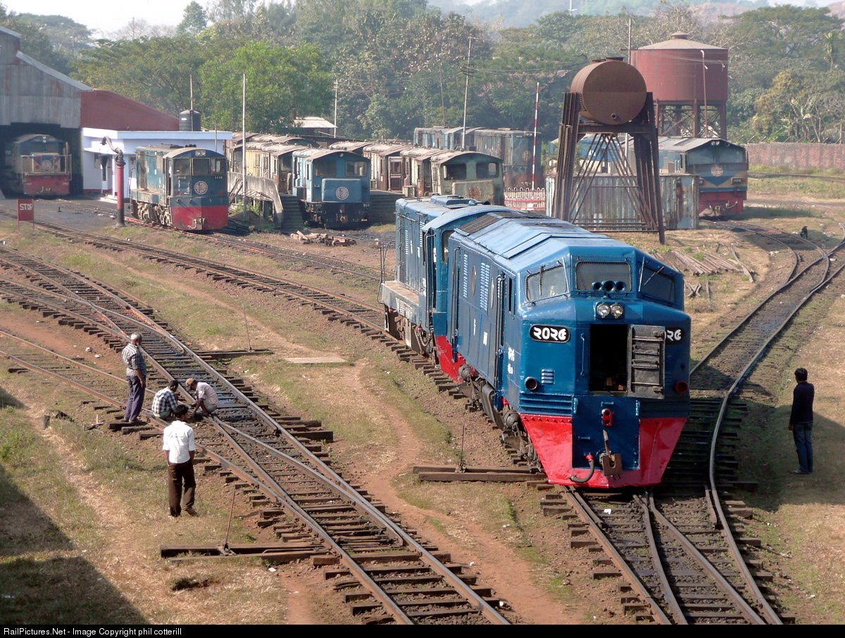 GM class No 2025 drops on to the loco shed at Pahartali, Chittagong. It has just left the nearby workshops where it had been overhauled and repainted. Other locos visible include classes 22, 27, 29 and 31.All are metre gauge. 2025 was built by GMD in London, Ontario in 1954.