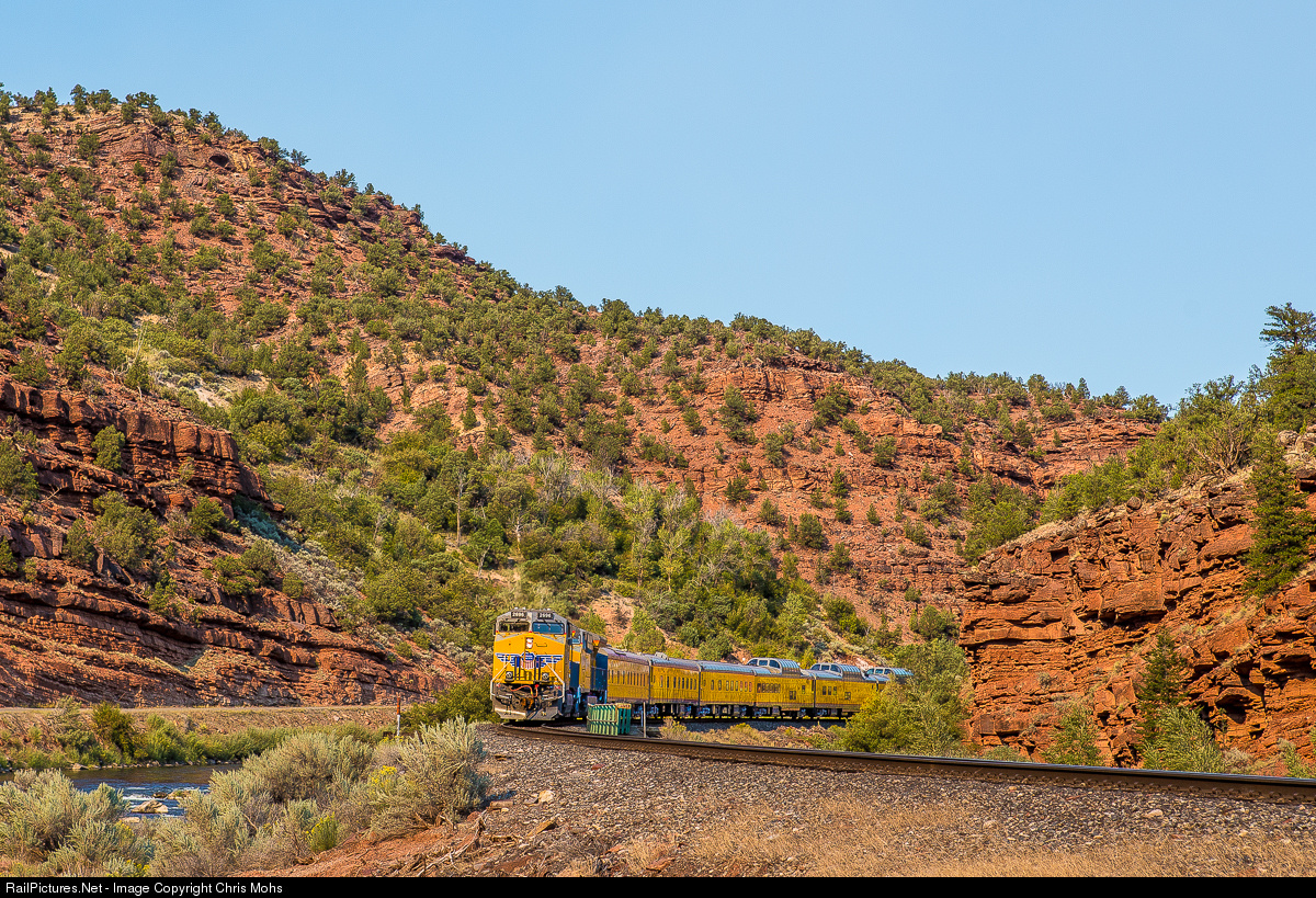 A Union Pacific Officers Special navigates through Red Rock Canyon on the Glenwood Sub.