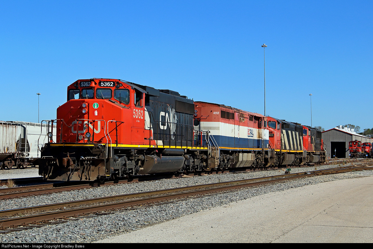 | CN SD40-2LW #5362 along with BCOL C40-8M #4612, CN C40-8M #2411 & a CN SD75I are seen here sitting at Harrison Yard in Memphis, TN. Awaiting their next assignment. PHOTO TAKEN WITH PREMISSION |