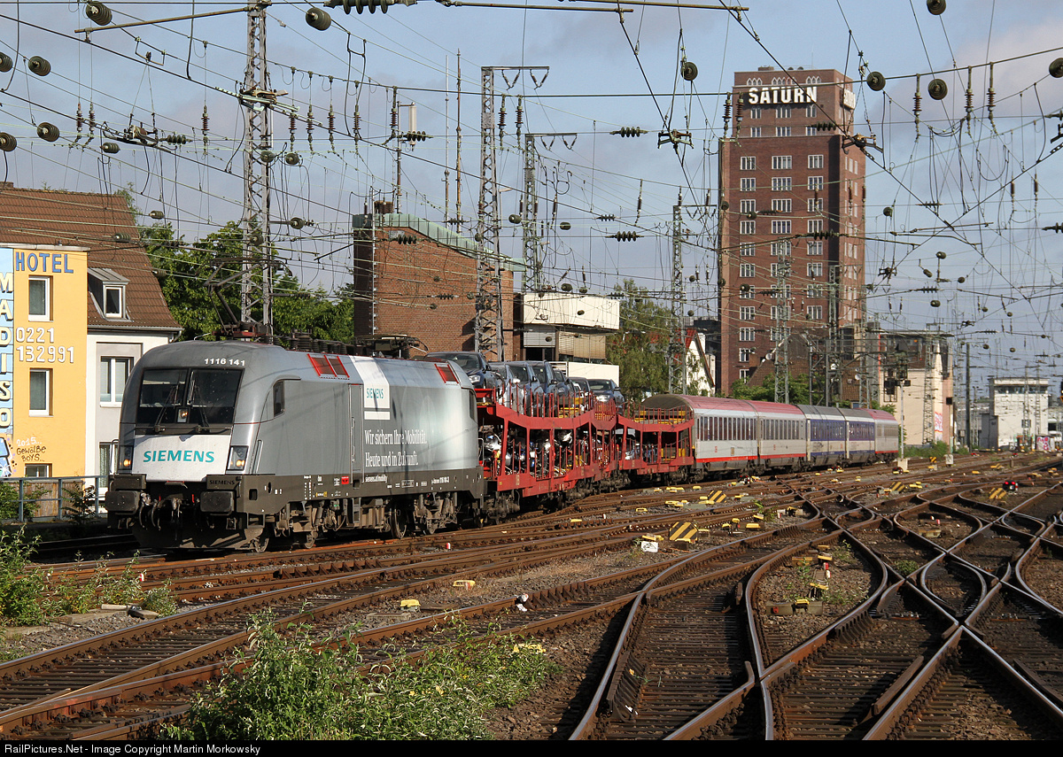 1116 141 with "Siemens" c/s arriving with EN420 in Cologne Central