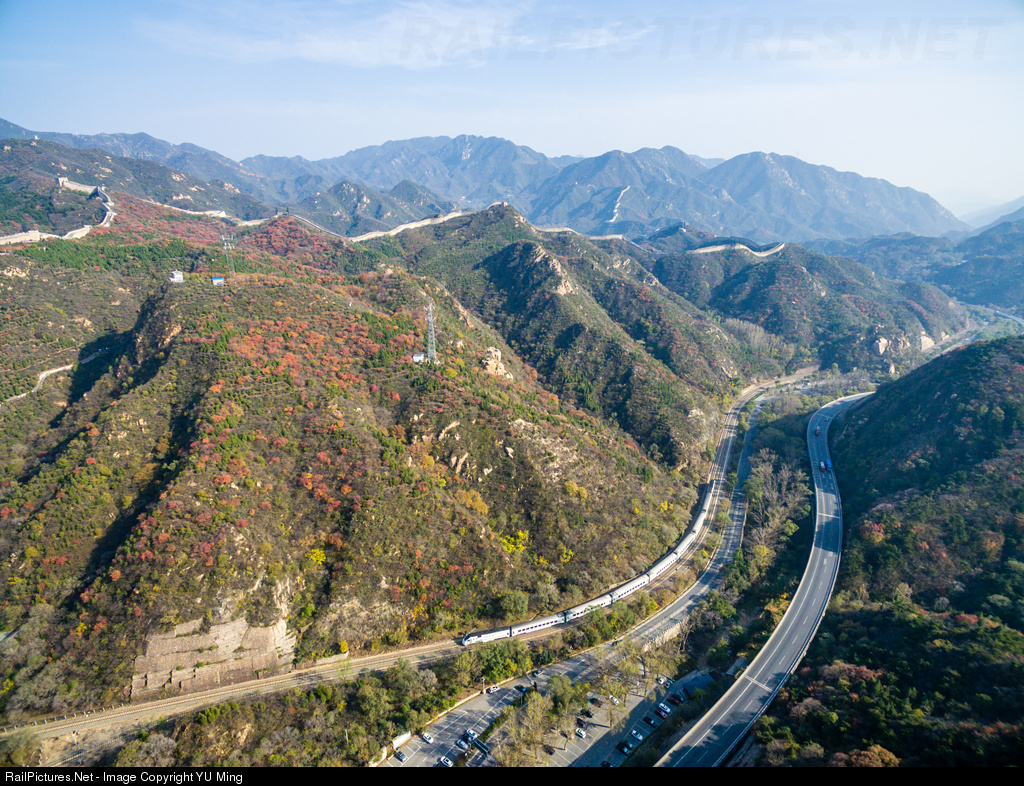 Train S216 is heading for Beijing North Station through the Great Wall and high ways. Photo taken by DJI Phantom 3 Advanced.