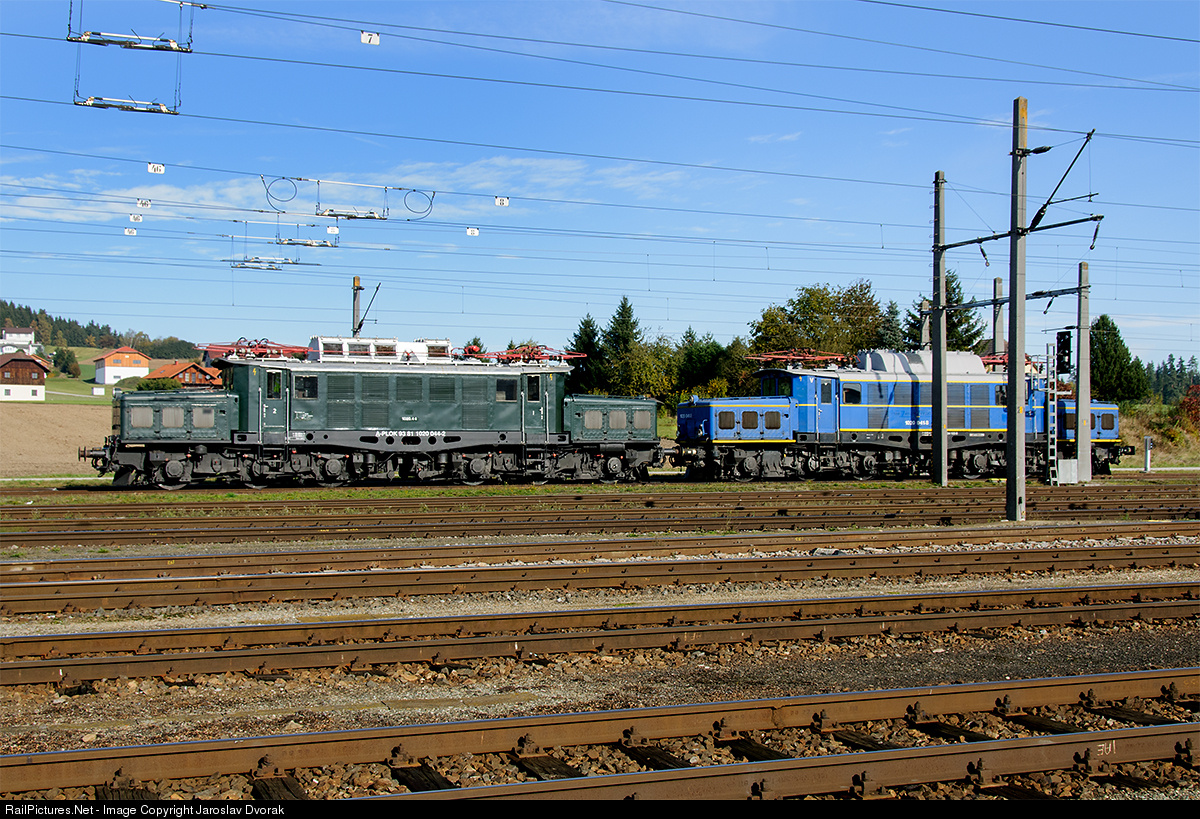 | Locomotive ÖBB 1020 044-2 and ÖBB 1020 041-8. Its production started in 1940. The first machines were deployed at the Austrian lines. Performance of these locomotives was 3,000 kW and max. speed of 90 km / h. (Crocodile is a nickname electric locomotives with the characteristic silhouette and colors reminiscent of the same animal). |