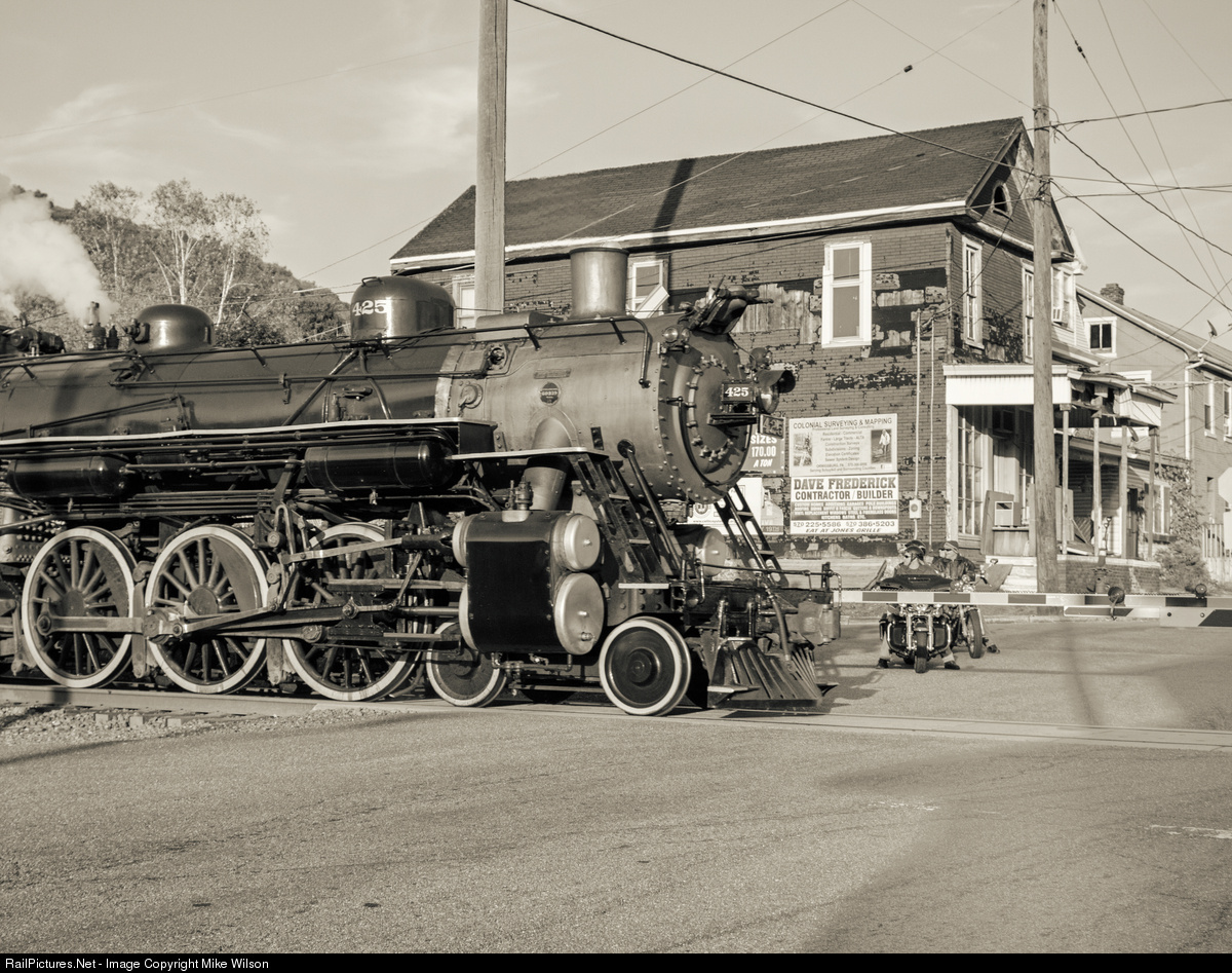 | "Americana" Motorcyclists with their loved ones tagging along for the ride, watch as R&N #425 tears through New Ringgold after a day pulling excursions through the Lehigh Valley without a diesel assist. |