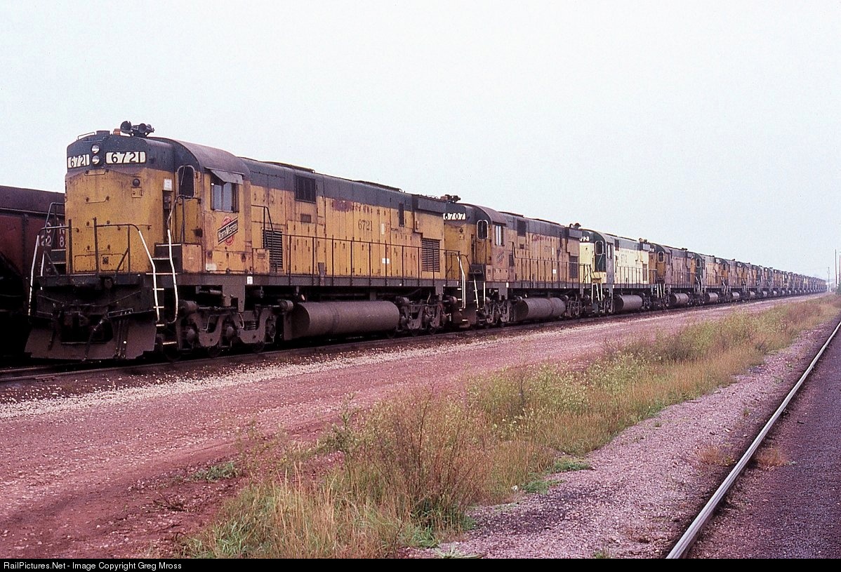 CNW 6721 awaits her fate along with the rest of the Alco C628 fleet in Escanaba, MI in September of 1988. After a long, productive career on both the N&W and the C&NW, all the units would unfortunately be scrapped.