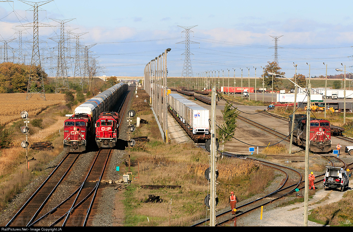 | CP train 147 Toronto to Gibson,IN IHB makes it's way through Milton, Ontario rolling past the Expressway Toronto West Terminal. |