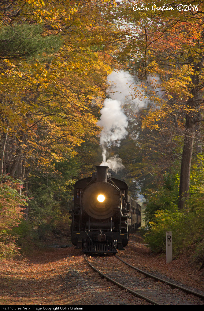 On October 29th and 30th, 2016, the Mass Bay Railroad Enthusiasts (MBRRE) and the Providence & Worcester railroad teamed up, running an excursion train out of Worcester to the Valley Railroad, via Putnam, Groton, and Old Saybrook. From Old Saybrook, the train would be handed off from the P&W to the Valley Railroad, where their 2-8-2 steam locomotive NH 3025 would take the train north, to a location known as Goodspeeds. Here, the excursion is seen in a section of Chester on the Valley Railroad known as Hadlyme among some colorful foliage. This excursion being seen as a "farewell" type of trip for the Providence & Worcester, as they are to be bought out by Genesee & Wyoming on November 1st, 2016.