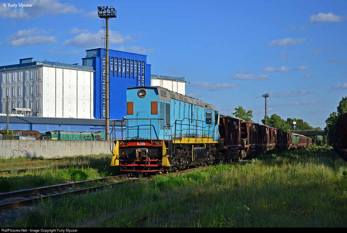 | The diesel hydraulic locomotive TGM6V-0206 was arrived to Obolon' industrial station with frieght train from Kyiv-Petrivka station. This diesel shunter was working on Kyiv-Petrivka branch of PJSC "Kyiv-Dniprovs'kyi PPZT" (railway branch Kyiv-Petrivka - Vyshgorod). Such this diesel shunter was built by Lyudinovsky Locomotive Plant in 1990. |