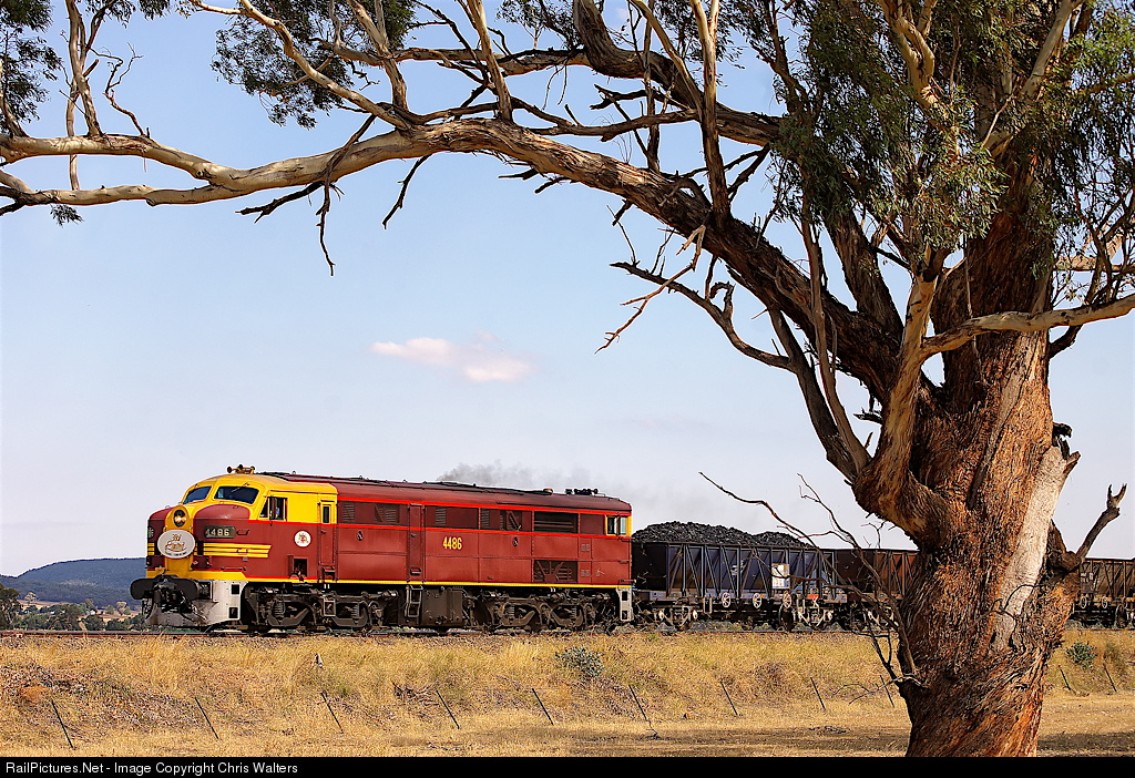 | A 3801 Limited special, headed by Goodwin/ALCo 'World Series' unit 4486, rolls through the locality of Bendick Murrell, bound for Cowra. |