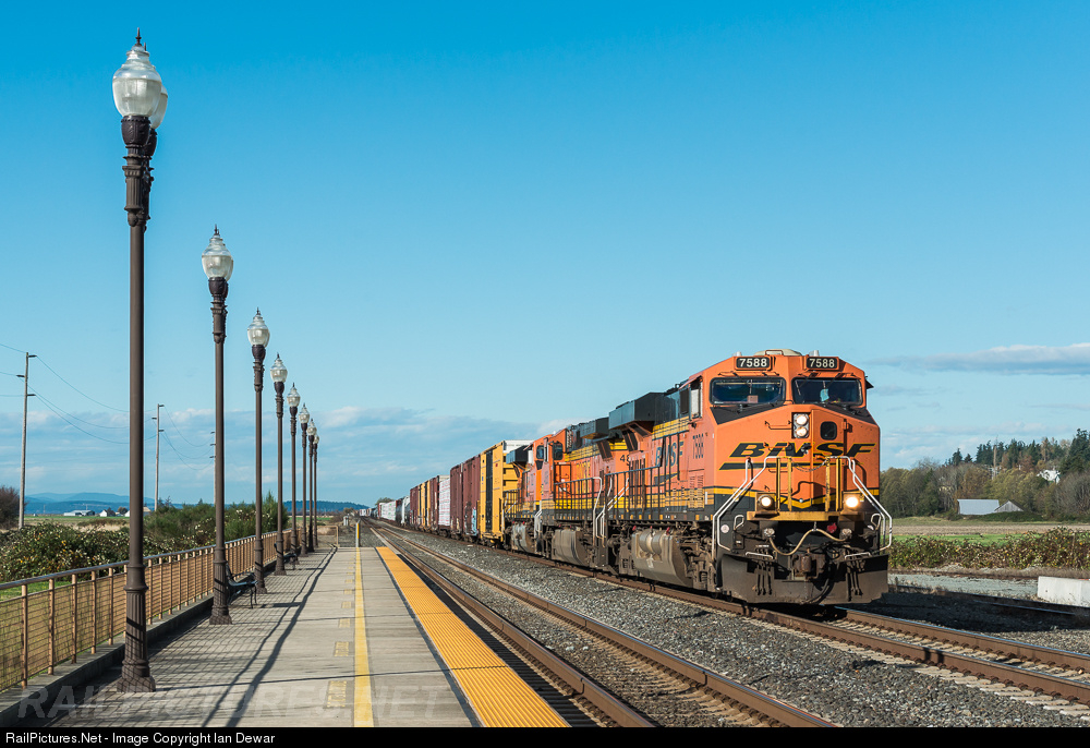 RailPictures.Net Photo: BNSF 7588 Burlington Northern Santa Fe GE ES44DC at Stanwood, Washington by Ian Dewar