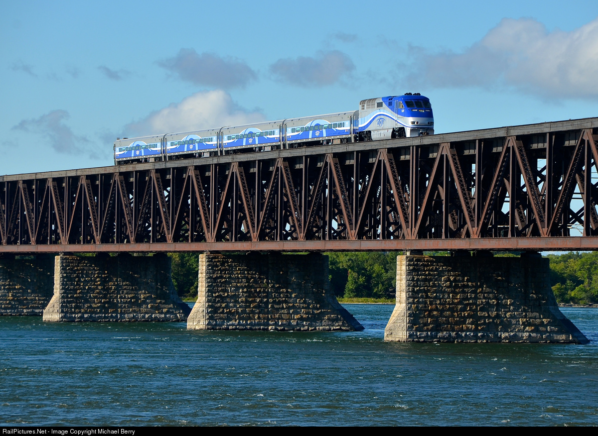 AMT 1329 leads AMT 72 over the St-Lawrence River on its way to its next stop at Lasalle station.