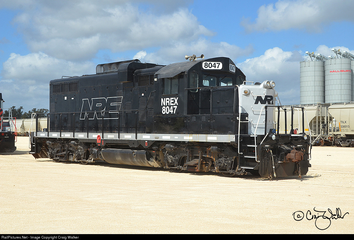 National Railway Equipment Leasing GP10 8047 is one of three locomotives that handle cars at Elmendorf, Texas', Rail Logix Alamo Junction facility. Built in May 1954 at Illinois Central GP9 9047, this engine was rebuilt into a "Paducah Rebuild" GP10 following the IC-GM&O merger, becoming Illinois Central Gulf 8047. This rebuild included chopping the nose, adding the aptly-named "frog eye" headlight and the installation of the large "yoke" air filters that made these engines so distinctive. The ICG eventually sold this engine to Mississippi Delta Railroad, as their number 8047, and from there it ended up in the employ of Nash County Railroad, where it retained the same road number, before being sold to NREX. Photographed on private property with permission and full PPE.