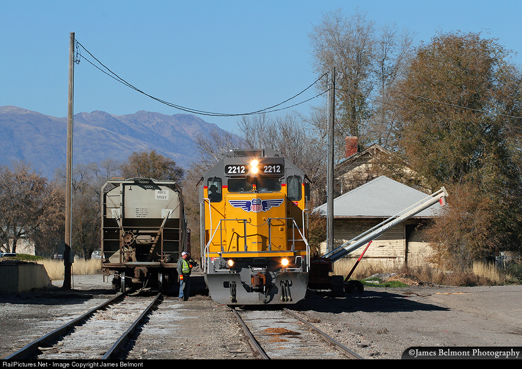 | Union Pacific's Cache Valley Local sets out a load of grain near the Oregon Short Line train depot in Preston, Idaho on Nov. 9, 2016. |