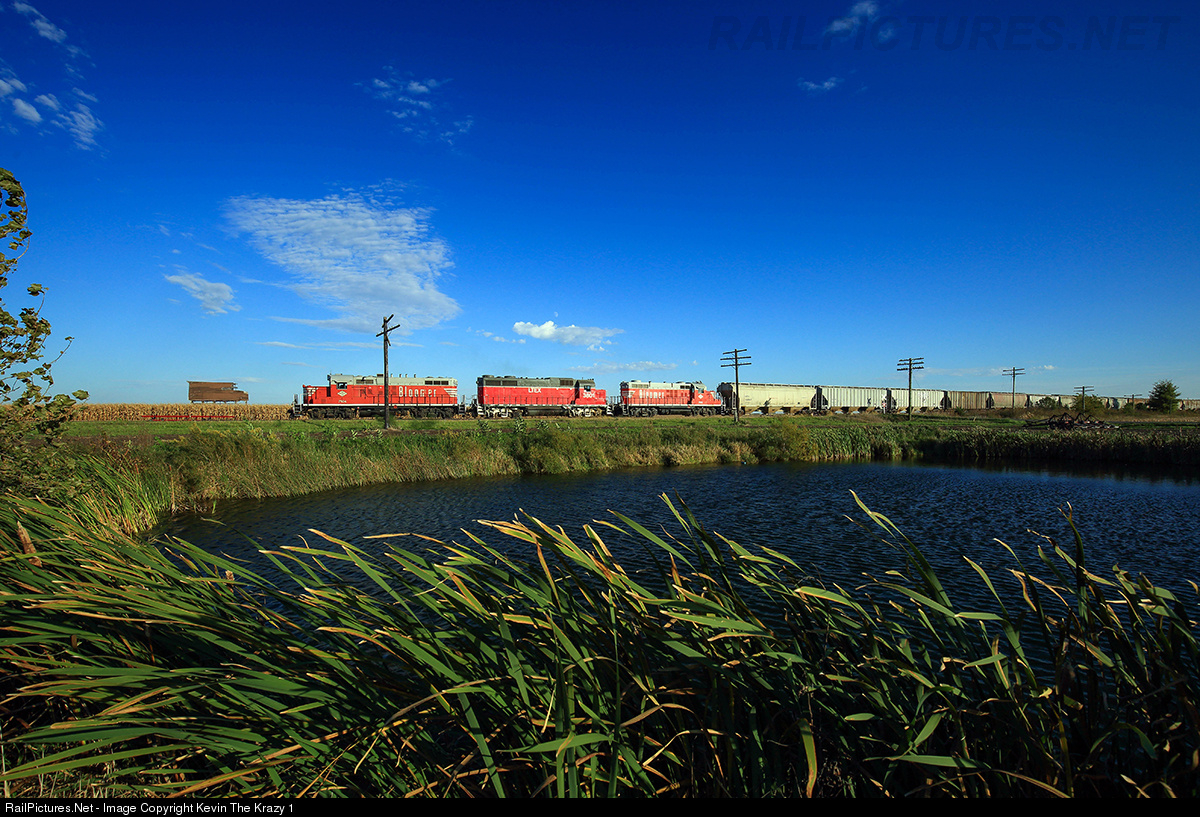 After loading at Cropsey and Colfax, a 50 car Bloomer train is seen shoving into the siding at Risk where the three engines will run around the train for the trip south to Gibson City, IL.