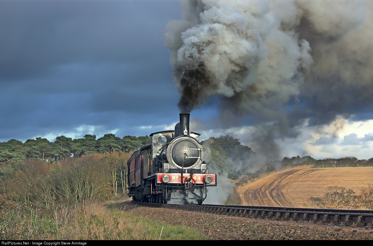 The pine topped bluff on the outskirts of the East Coast town of Sheringham has the decidedly macabre name of 'Dead Man's Hill'. Nothing dead about Great Eastern Railway No.564 though as she attacks the steady climb towards Weybourne with the sullen backdrop of a threatening rainstorm.