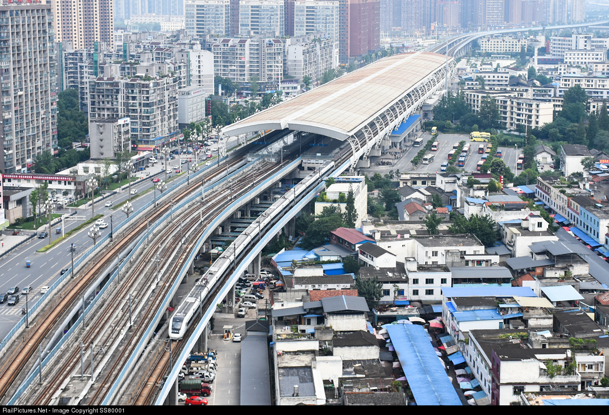 Xipu station is mainland China rare national railway, chengdu subway structure with a total platform transfer station.In the picture,the middle two tracks for subway.And the outside of two tracks is for railway.