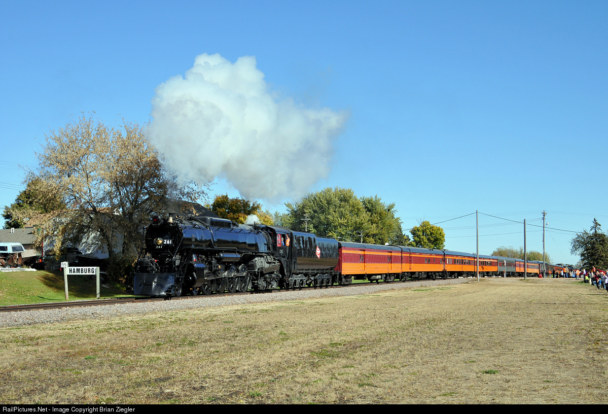 Friends of the 261 put on two photo runbys at Hamburg on a picture perfect Sunday morning with the MILW 261 pulling 14 vintage cars on this Fall Foliage Special. Hamburg dates back to 1881 when the M. & St.L. Railway laid rails.