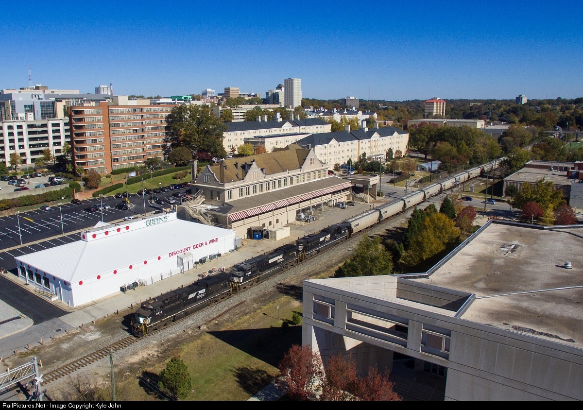 NS 52V comes through the center of Columbia, SC passing the former southern station.