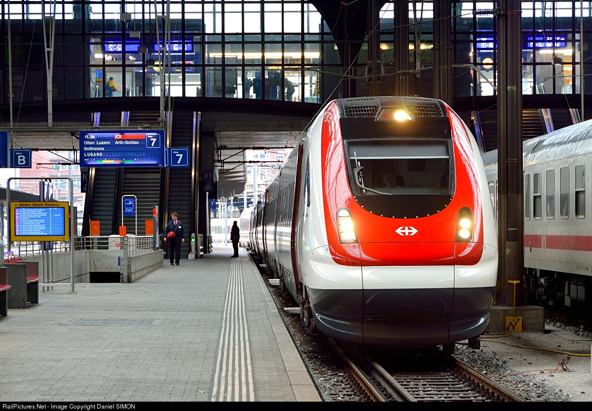 | ICN #500 016 (named after the Swiss author Jean Jacques Rousseau) is ready to leave the Basel SBB station with a train to Lugano. |