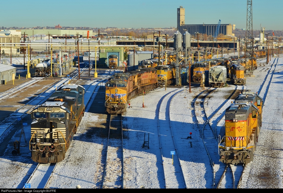 The first snowfall of winter has dusted the UP's North Yard, giving a visiting Norfolk Southern Dash 9-40CW a taste of Colorado snow.
