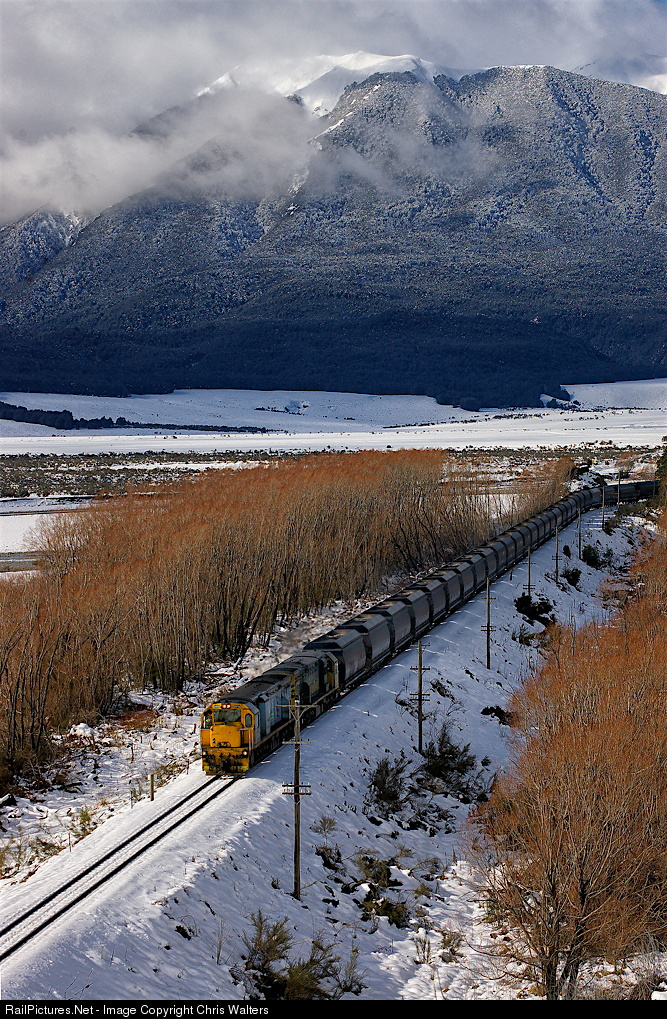 Trains on 3' 6" (1.067m) track from Whangarei to Bluff with virtually heritage rebuilt EMD and GE locomotives still the mainstay power. The network was privatized in 1990's and operated by Toll until 2008 when state owned KiwiRail was established.