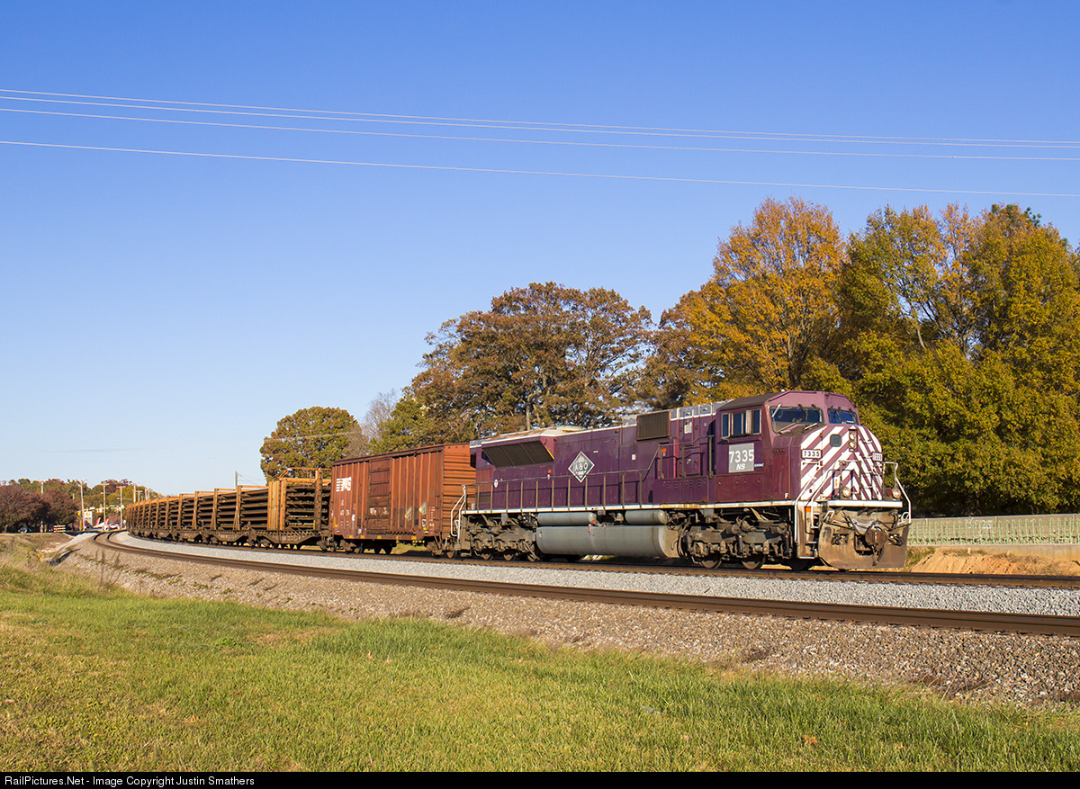 | Loaded rail train NS 913 rolls south through Landis, NC with NS 7335 leading. 7335 was recently released from storage and is one of ten SD90MACs received in a trade from CIT Group earlier this year. |