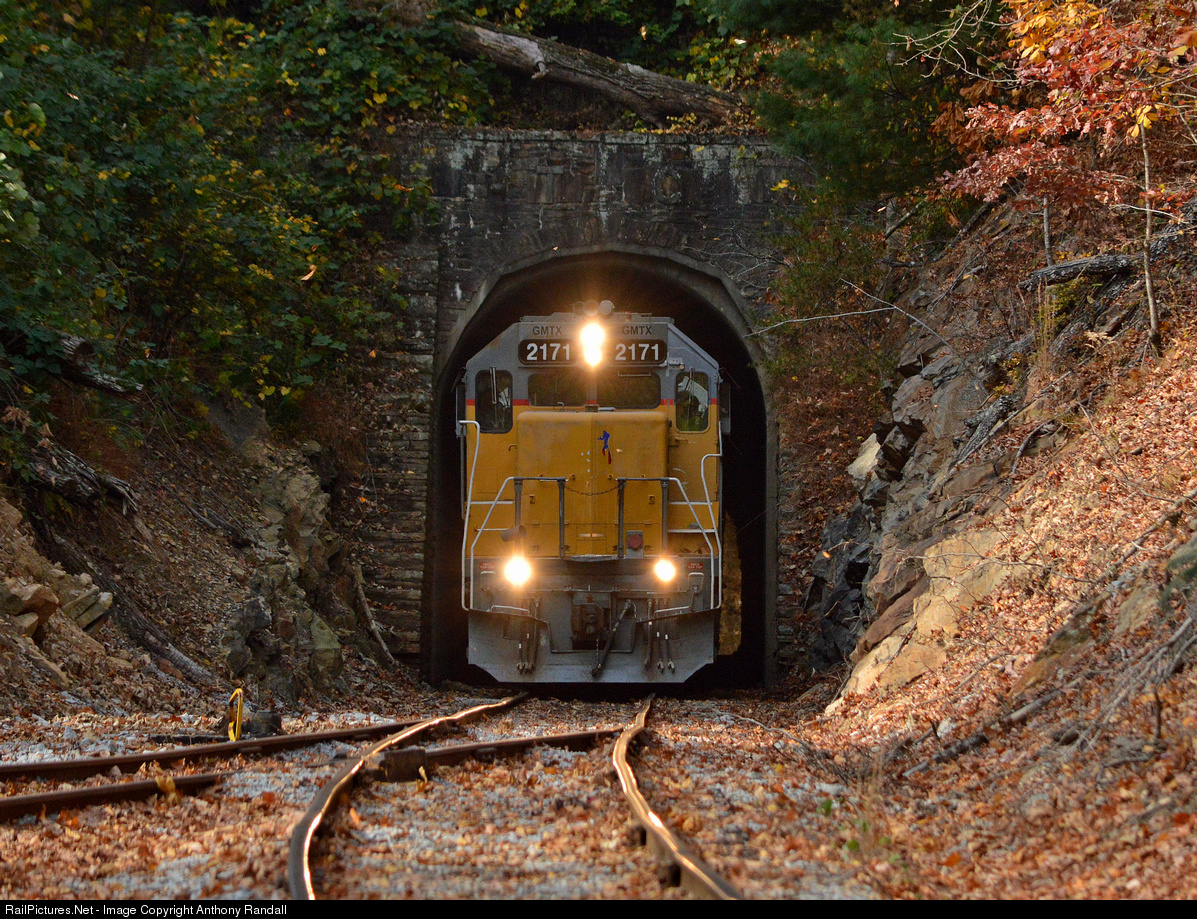 Leased GP38-2 2171 peaks its head outside of the Walden Ridge Tunnel on the former Tennessee Central main line that is now owned by Lhoist North America.
