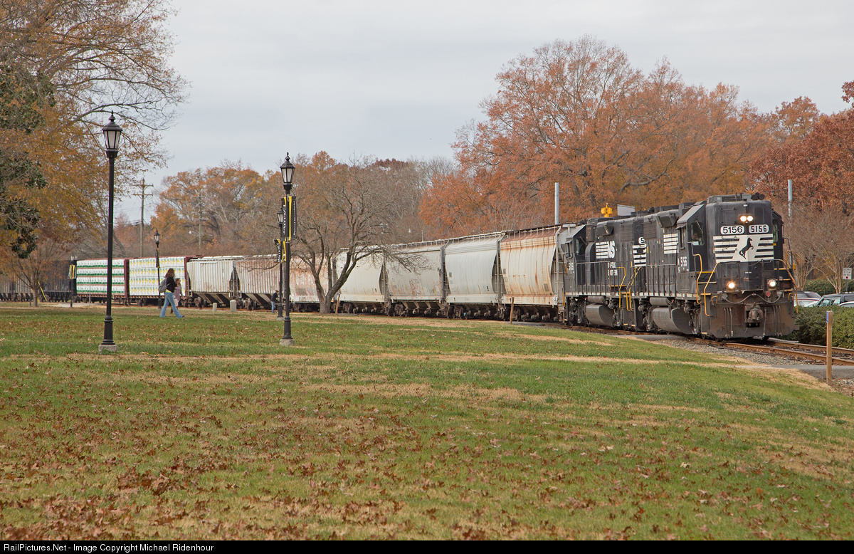 | Norfolk Southern`s Yadkin Local cuts through the campus of Pfeiffer University. The NS N-Line built as the Yadkin Railroad branches from the NS mainline in Salisbury NC and ends in Albemarle NC although in service trackage stops at Halls Ferry Jct just north of Albemarle. |