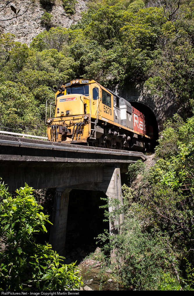 Just three weeks before a magnitude 7.8 earthquake hit this region, DXC5270-DXC5039 blast out of Tunnel No.19 and cross the Ohau Stream on the South Island's Main North Line. About 100 metres to the east of this location is a New Zealand Fur Seal colony, which has become well known due to the unique behavior of the young seal pups raised here: While learning to swim, they leave their parents and the ocean behind, swimming up the freshwater stream (and under the rail bridge) to a pool under a waterfall, where they can often be seen playing. This particular tunnel entrance and bridge survived the earthquake, but the surrounding landscape has changed dramatically and at the time of writing this walking track remains closed to the public.