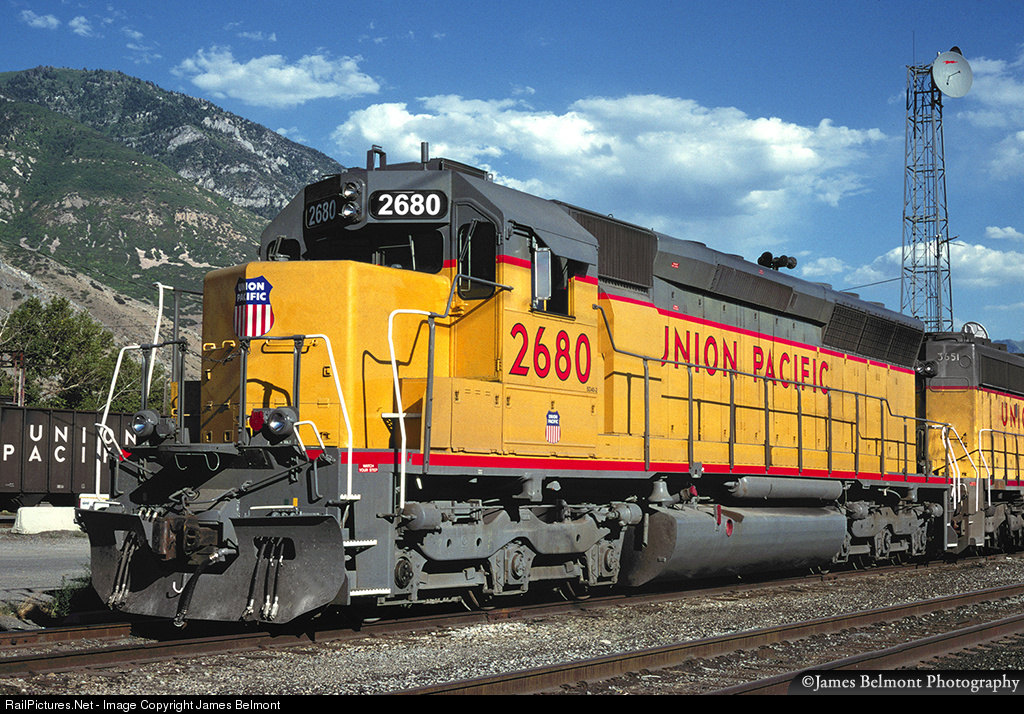 Looking a whole lot like an EMD SD45, Union Pacific MK Rail SD40M-2 No. 2680 awaits an assignment at Provo Yard on July 22, 2000. It was built Seaboard Coast Line SD45 No. 2027 by EMD in Sept. 1971. Later it worked on the CSX and VMV before undergoing an SD40M-2 rebuild at MK Rail in Boise, becoming the SP 8604 in Sept. 1994. By 2012, it went on to work for the New England Central as NECR 2680.