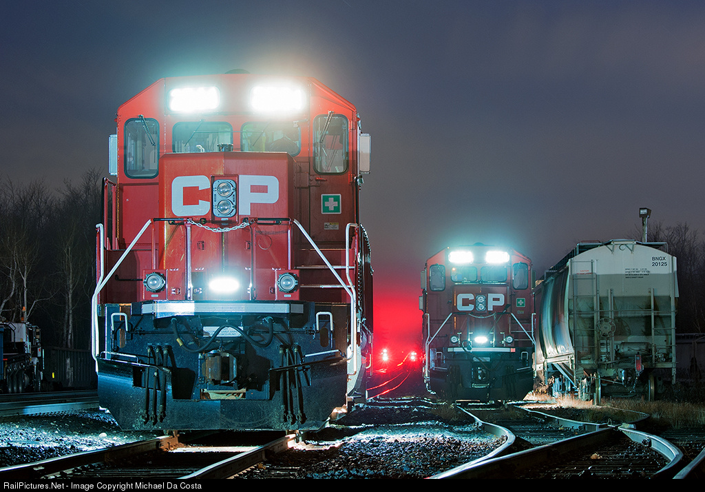 It's a chilly fall night, the echoing enchantment of 8 cylinder 710 series prime movers idle through the air. On our left, CP 2244 sits by her lonesome after being switched off the TEC train due to the computer screen on the control stand going bad, beside her is the London Pickup tied up for the night as the crew rests in the hotel a few miles to the east.