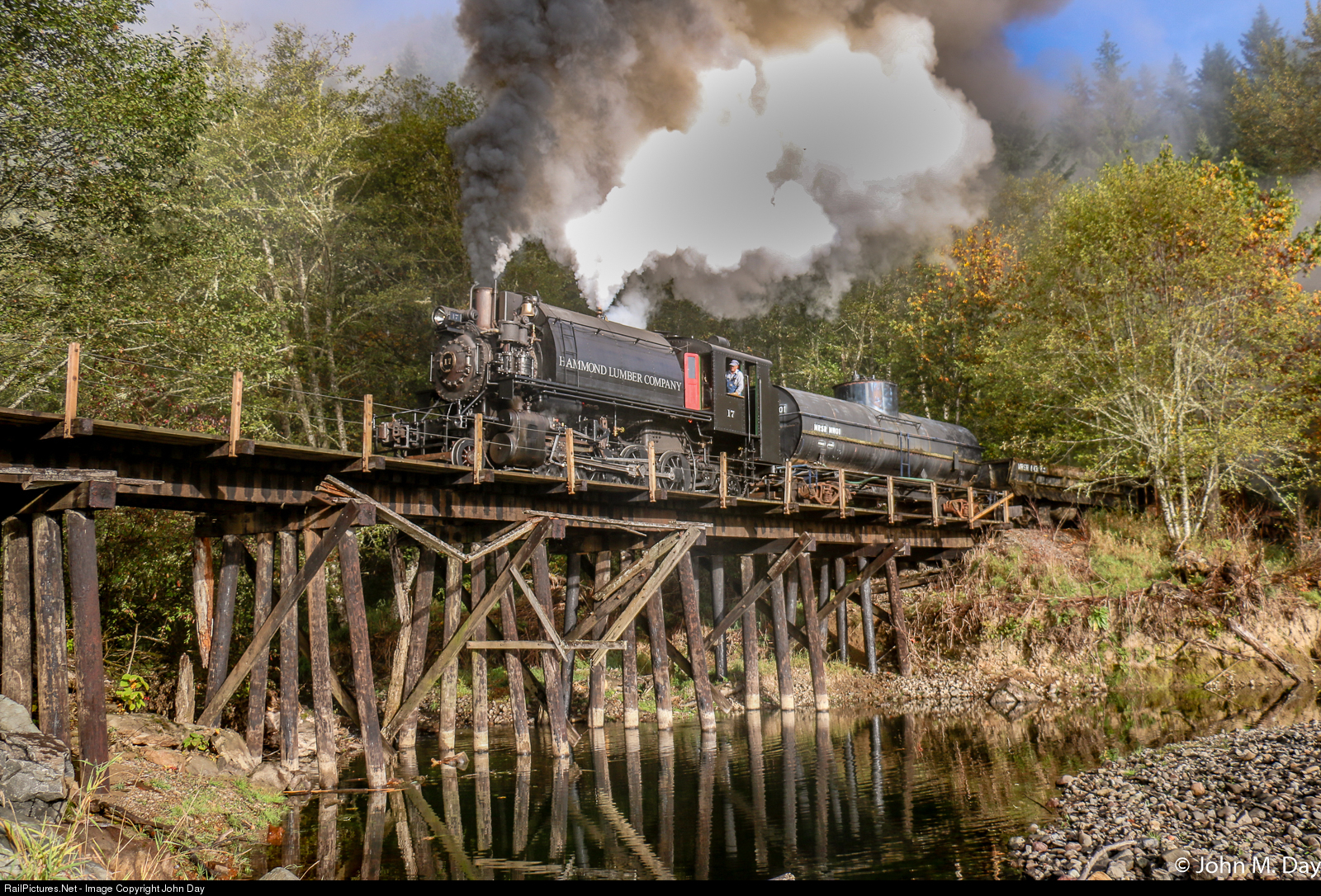 The barely audible gurgle of flowing water in Roundtop Creek is momentarily interrupted by the sound and fury of Hammond Lumber 17, re-enacting a scene typical of the Pacific coast forests 50 or more years ago. A photo charter run by Lerro Productions recreated this scene to the delight of the attendant photographers.
